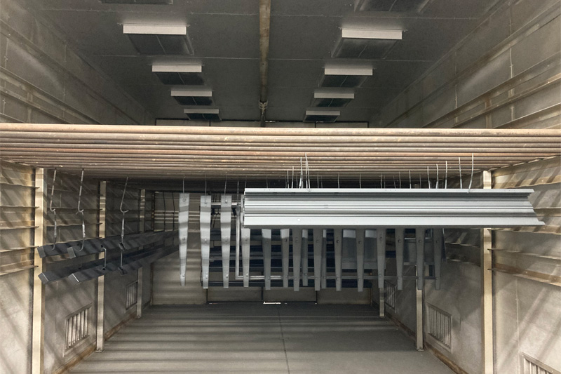 当社では大型の大型乾燥炉や水洗ブースなど各機材を設備しています。中でも大型の熱風乾燥炉では、最大6メートルの長尺(大きなもの)な受注にも対応でき、幅広い分野でのニーズにお応えできます。